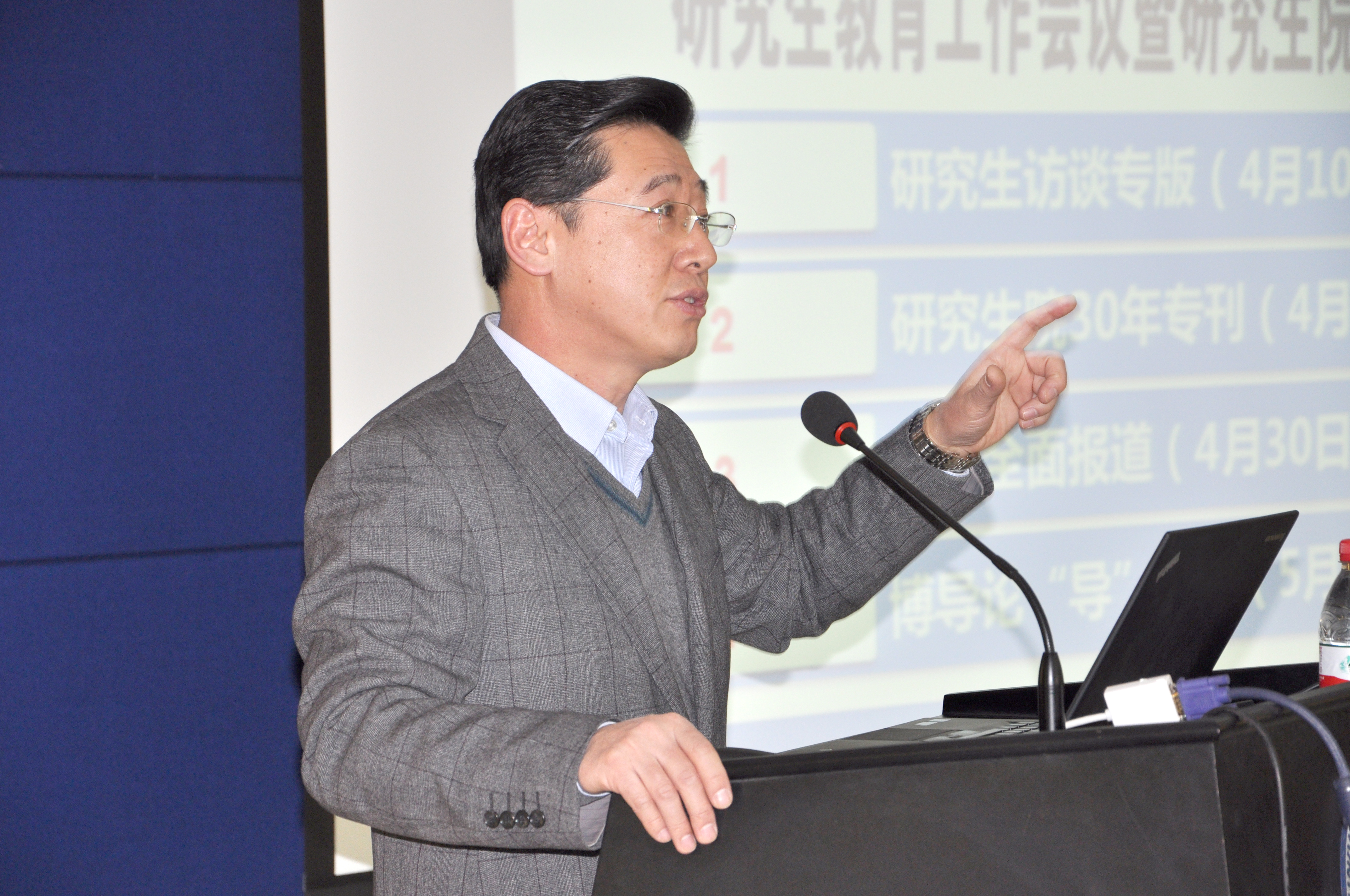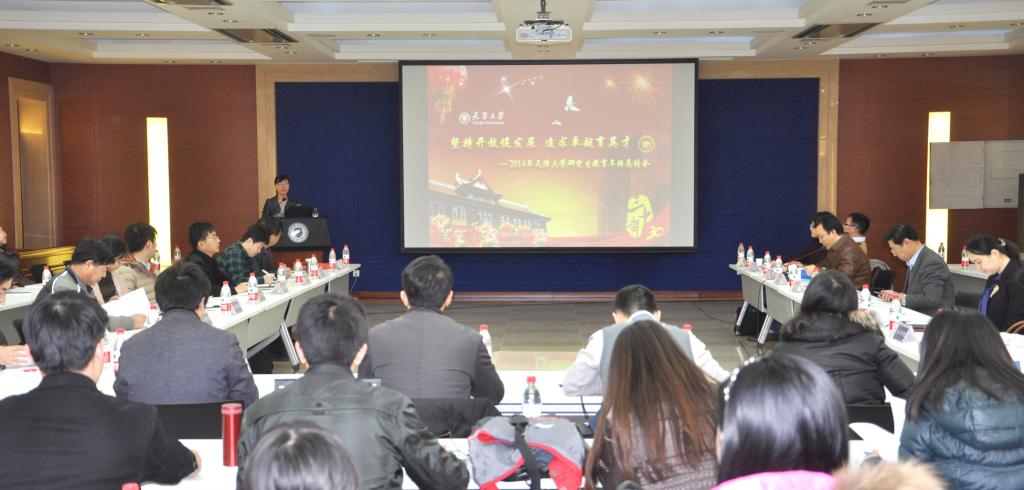 会上,研究生院常务副院长白海力作了题为《坚持开放促发展 追求卓越育英才》的报告,对天津大学2014年研究生教育工作进行了全面的回顾和汇报,并明确了2015年研究生教育重点工作。白海力首先从第三次研究生教育工作会议的召开、改革方案的设计、改革的具体举措、改革的影响与成果、改革的体会等方面回顾了研究生教育综合改革工作,并从招生、培养、学位、学科、高端教育培训以及队伍建设等方面总结了2014年研究生教育各项成果,同时就2015年研究生院的重点工作,如:推进研究生教育改革、加强学科规划与建设、完善研究生教育管理等方面进行了规划。