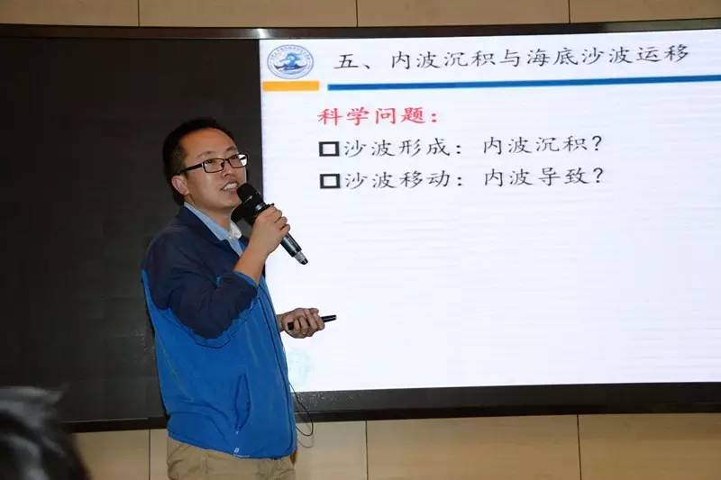 王虎老师介绍到,海洋内波是发生在海洋内部密度稳定层化水层之间的一种波动,是海洋中普遍存在的一种动力学过程,它在海水水平和垂直交换过程中对于动量和热量的输运起重要作用。海洋内波发生需要具备海水密度层化形成稳定层结,另外还需要风、流等外界扰动。