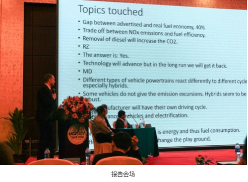 会议第一天,9位专家从先进燃烧控制、后处理控制、生物燃料燃烧与点火控制、瞬态空燃比控制、燃烧放热率优化控制、燃烧的控制环境、欧6后处理控制、WLTC/RDE下的发动机和后处理控制等方面阐述了内燃机在当前新形势下面临的控制问题及解决方案;针对WLTC与RDE条件下的内燃机后处理控制和驾驶排放控制的实时控制和诊断,分享了面对真实行驶排放测试下如何开展相关的排放与后处理工作。在Panel环节,演讲嘉宾与参会代表对“最新排放法规的关注要点及达到法规要求的可能途径;实际驾驶排放测试(RDE)在全球的推广趋势及面临的挑战;实际驾驶排放测试(RDE)的确定原则及对燃油经济性的影响”的主题进行了热烈的讨论。