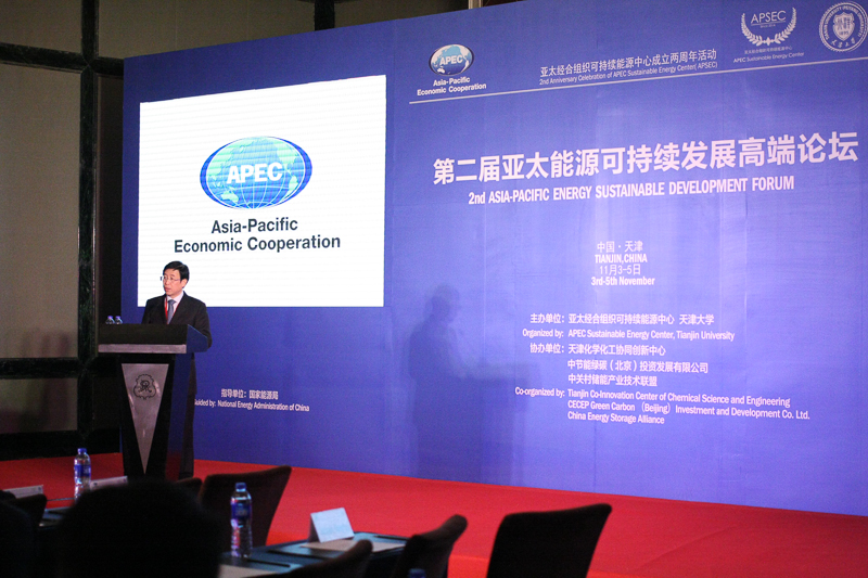 本站讯(通讯员 卢金 黄炜)11月3-5日,APEC可持续能源中心(APSEC)在天津瑞吉金融街酒店举行“第二届亚太能源可持续发展高端论坛”暨成立两周年庆祝活动,同期召开了APSEC第二次指导委员会会议。APEC能源工作组(EWG)新任主席、16个APEC经济体官方代表、EWG下设的3个专家组(新能源与可再生能源专家组EGNRET、清洁化石能源专家组EGCFE、能效专家组EGEE&C)和1个任务组(能源弹性ER-TF)的代表以及独立专家近百名国际人员参会,国家能源局、天津市发展改革委、科委和建委等领导前来参会。出席会议的还有几十家国内知名企业和地方政府代表。天津大学党委书记李家俊出席会议并讲话,校长钟登华出席欢迎晚宴并致辞,我校人文社科处、国际合作处、建筑学院、化工学院等相关部门负责人参加会议。新华社、天津电视台等媒体对论坛进行了报道。