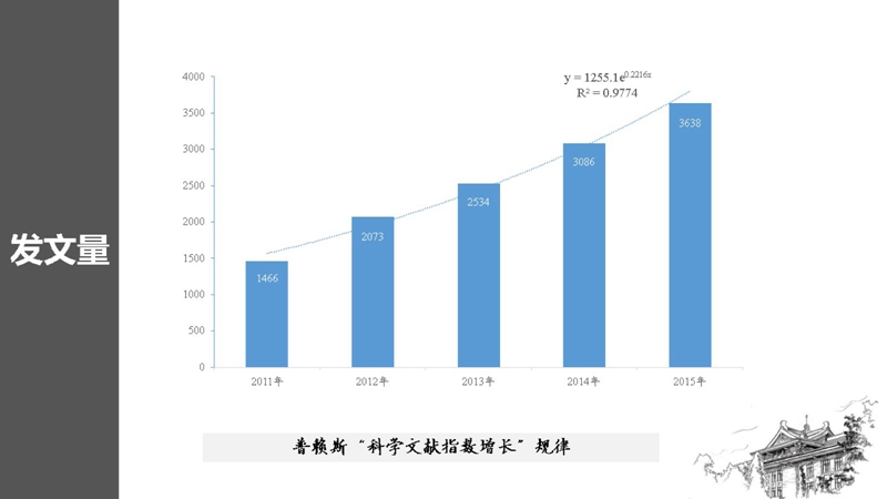王梅老师重点推荐了由美国德雷塞尔大学计算机与情报学教授陈超美基于Java语言开发的信息可视化软件CiteSpace。那么具体要怎么操作呢?王梅老师以以天津大学“十二五”期间(2011-2015年)在Web of Science核心合集上发表的12797篇文献为数据源,使用CiteSpace进行了分析。通过该工具的分析,我们可以得出多组重要数据,如下述5个。