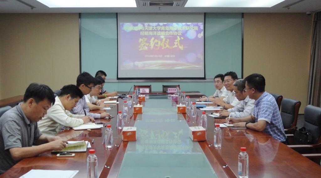 随后,天津大学青岛海洋工程研究院常务副院长咸良和青岛华通军工投资有限公司副总经理冯晓东代表双方签署了经略海洋战略合作协议。随着新一轮战略合作的展开,双方将在海洋船舶环保装备、海洋人工智能装备等领域开展全面合作,共同提高院企双方的自主创新能力,服务当地新旧动能转换。
