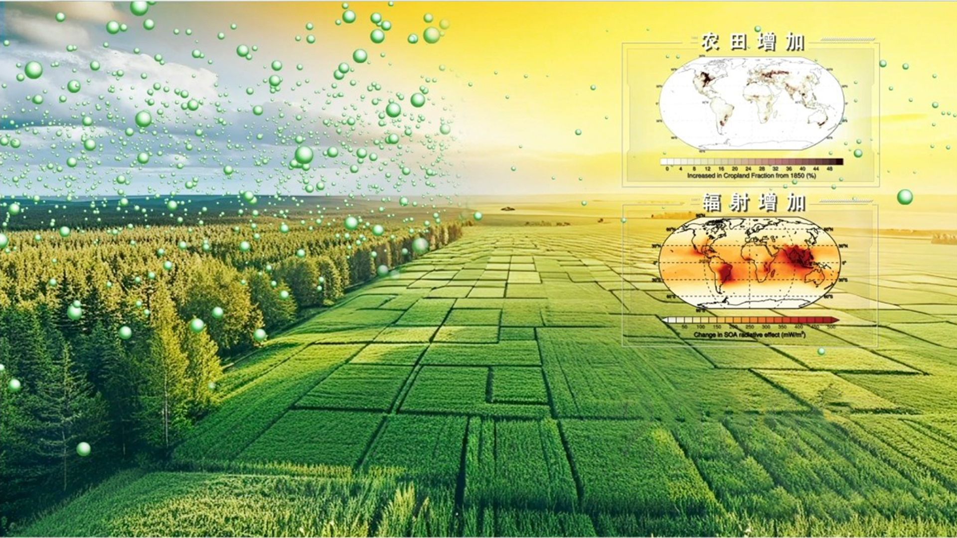 工业革命以来,为满足人口激增的粮食需求,人类大规模开垦农田,导致全球森林、草地锐减。这如何影响气候?传统认知聚焦于碳储存、反照率与水循环等的变化。然而,自然植被释放的挥发性有机物(VOCs),是形成二次有机气溶胶(SOA)的“原料”。大气SOA能直接影响太阳辐射(直接效应)并改变云的性质(间接效应),对地球气候系统起到重要的自然冷却作用。那么,当森林变农田,地球这层“降温屏障”是否受损?其气候代价有多大?这一关键问题长期被忽视。