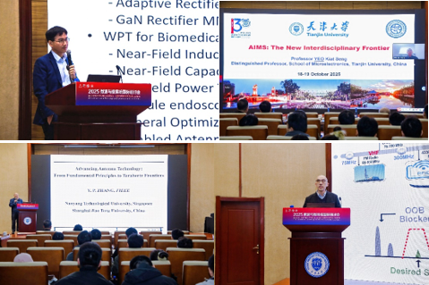 本次论坛邀请到九位包括IEEE会士在内的国际知名专家参会并作报告,分享最新的学术进展。特邀专家分别为IEEE会士、新加坡工程院院士、香港城市大学教授Yongxin Guo,IEEE会士、加拿大工程院外籍院士、新加坡工程院院士、新加坡科学院院士、天津大学教授Yeo Kiat Seng,IEEE会士、南洋理工大学教授Yueping Zhang,国家级领军人才、天津大学教授王科平,IEEE会士、加拿大工程院院士、加拿大科学院院士、卡尔顿大学教授Qi-jun Zhang,IEEE会士、赫瑞-瓦特大学教授Jiasheng Hong,埼玉大学教授Zhewang Ma,IEEE会士、加拿大工程院院士、加拿大皇家学会院士、蒙特利尔理工学院教授Ke Wu,IEEE会士、华为Fellow Hanyang Wang。九位专家分别作了题为“Optimizing Wireless Power Transfer for IoT and Biomedical Innovations”“AIMS: The New Interdisciplinary Frontier”“Advancing Antenna Technology: From Fundamental Principles to Terahertz Frontiers”“Blocker-Tolerant Mixer-First Receivers for Advanced Software-Defined Radios”“Advances in Machine Learning Methods for Nonlinear Modeling of Electronic Devices and Packages”“Advanced RF Device Technologies for Satellite Applications”“Sophisticated Design of Bandpass Filters Using Multi-Mode Dielectric Resonators for Mobile Communication Base Stations”“Interferometric Transceivers and Technologies for Wireless Systems”“Design of Wideband and Multiple Planar Antennas Using the Concept of Building Block”的特邀报告,并与与会师生进行互动交流。