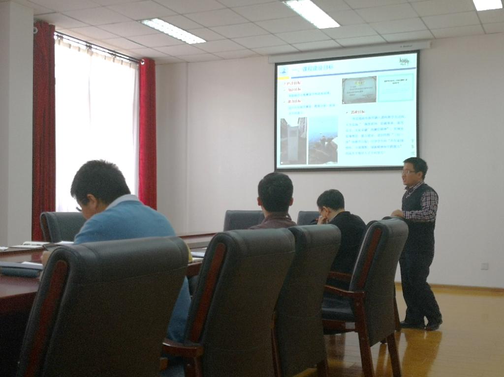 巩乐首先汇报了海洋学院“课程思政”试点项目的总体情况。他详细介绍了“课程思政”试点课程的组织流程,关键过程支撑材料和学生反馈效果,并从价值塑造、能力培养和知识传授三个方面入手,全面总结了2018年“课程思政”试点项目的建设成效。常帅、薛彬、张亮等三位课程负责人分别从课程基本信息、课程建设目标、课程进度安排、思政内容体现、目标达成考核、教学效果与学生反馈、教学思考与工作建议等方面,汇报了各自负责课程的“课程思政”项目实施情况。
