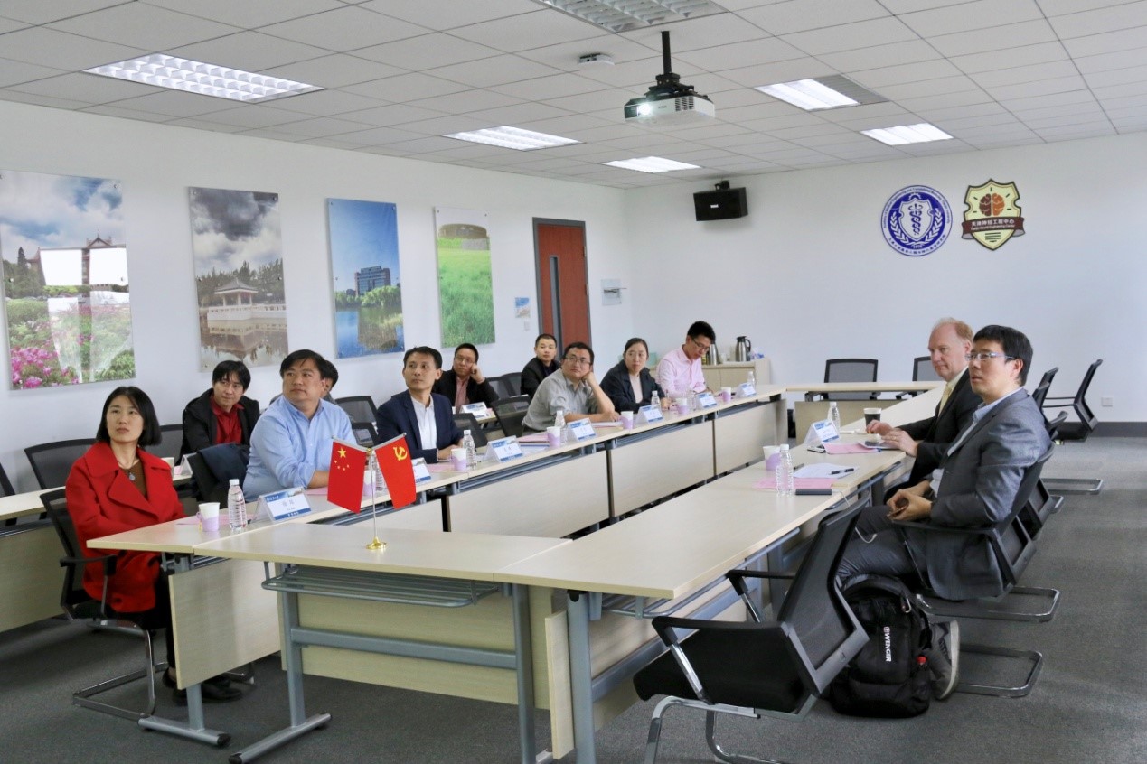 随后,Anton Peter Jacob Middelberg在会议室与学部领导及相关教师进行座谈,万亮从医学部组织架构、人才培养、科研成果三个维度汇报了学部获批的全国首个智能医学本科专业的建设情况。她提出新专业契合当前医疗卫生人才培养模式的新要求,准确把握了“医疗+”时代的新方向。在人才培养方面,万亮介绍了天津大学与天津医科大学签署战略合作协议,旨在培养新时代医工结合的复合型人才,加强学生工程和医学知识的训练,衔接医学人才培养与临床需求、促进医学学科建设与产业融合,开拓医学人才教育的国际视野。
