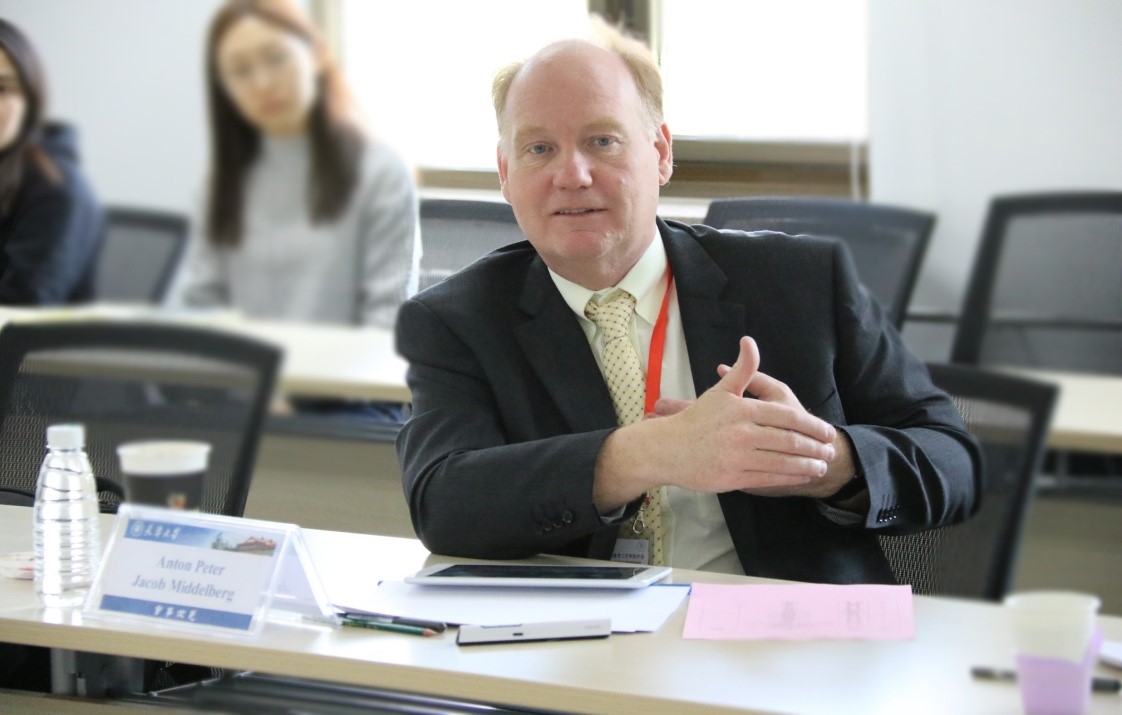 本站讯 2018年10月10日,教育部高等教育教学评估中心专家组成员来到天津大学医学部开展本科教学工作审核评估现场考察,医学部积极配合学校评估工作安排,并于下午迎接了阿德莱德大学工程、计算机与数学科学学院执行院长、评估专家Prof. Anton Peter Jacob Middelberg教授走访调研,深入了解我部本科教学情况。医科建设办公室副主任万亮,医学工程与转化医学研究院副院长庞博,生物医学工程系主任何峰教授,以及医学部师生代表接待了Anton Peter Jacob Middelberg。