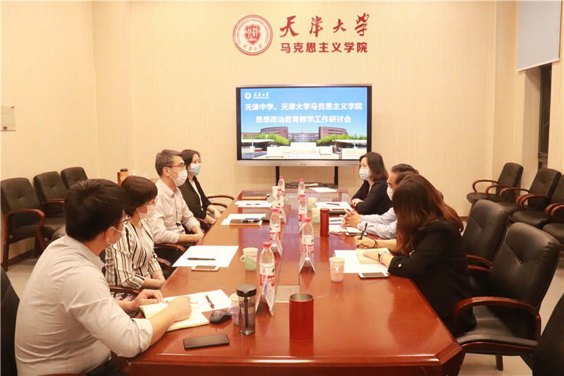 本站讯(通讯员 栾淳钰 摄影 寇文静)为贯彻落实习近平总书记在学校思想政治理论课教师座谈会上的重要讲话精神和《关于深化新时代学校思想政治理论课改革创新的若干意见》等相关文件精神,推进大中小思政课一体化建设,5月25日,天津大学马克思主义学院与天津中学的思想政治教育教学工作座谈会在北洋园校区马克思主义学院会议室举行。天津中学校长孙建昆、德育处干部吕燕津、思政课教师代表崔巍巍,马克思主义学院党委书记徐斌、党委副书记靳莹、思想政治教育学科负责人刘娜、思政课青年教师代表栾淳钰参加了座谈会,就大学与中学协同开展思想政治教育教学工作进行了深入交流研讨,并初步达成了共建意向。