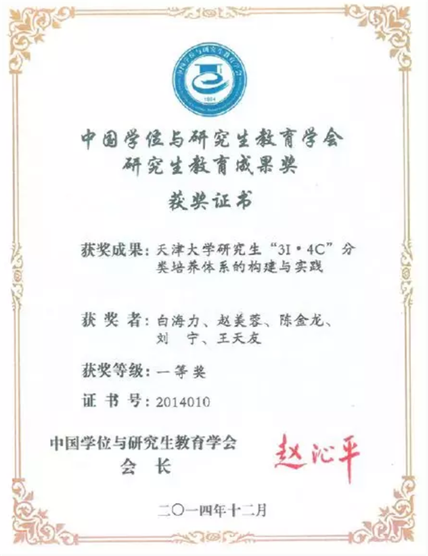 《天津大学研究生“3I·4C”分类培养体系的构建与实践》荣获中国学位与研究生教育学会首届研究生教育成果一等奖