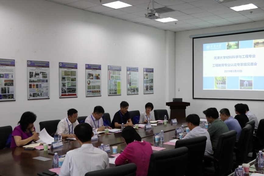 本站讯(通讯员 孙慧超)2019年5月30日‒6月1日,中国工程教育专业认证协会材料类专业认证专家组莅临天津大学北洋园校区,对我校材料科学与工程专业进行为期3天的工程教育专业认证现场考查。专家组由西北工业大学教授郭喜平担任组长,石家庄铁道大学教授于旭光、中国中材国际工程股份有限公司教授级高工狄东仁、中国建筑材料科学研究总院石英与特种玻璃研究院教授级高工王玉芬为专家组成员,电子科技大学黄艳老师担任专家组秘书。