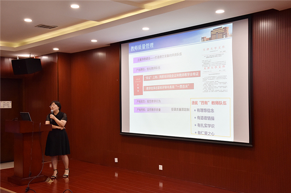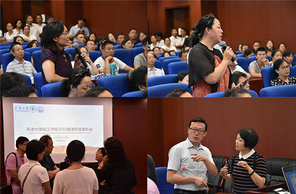 高旭东汇报学院学生管理情况。他以海棠季、水果节等为例介绍了天大特色的教育模式;向学生家长介绍了学校素质一流的辅导员队伍;学生党建工作、心理健康教育、体育教育等促进学生全面发展的途径;化工书院更为学生配备了健身房、厨房、音乐室等丰富学生课余生活的活动室,让学生家长对学校的育人工作了解更加全面,同时他希望家长能够和学校保持密切的沟通,共同助力三全育人。