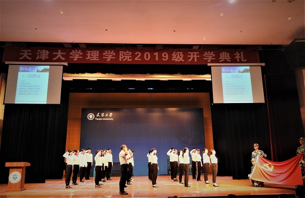 新生周期间,理学院党委学工办主任团委书记吴頔老师与理学院辅导员学生党支部书记赵鹏老师为全体19级新生上了一堂特殊的党课——入党教育。同学们在课程中学习了优秀党员事迹,了解了天津大学入党流程,也更加坚定了新生们的入党信念。