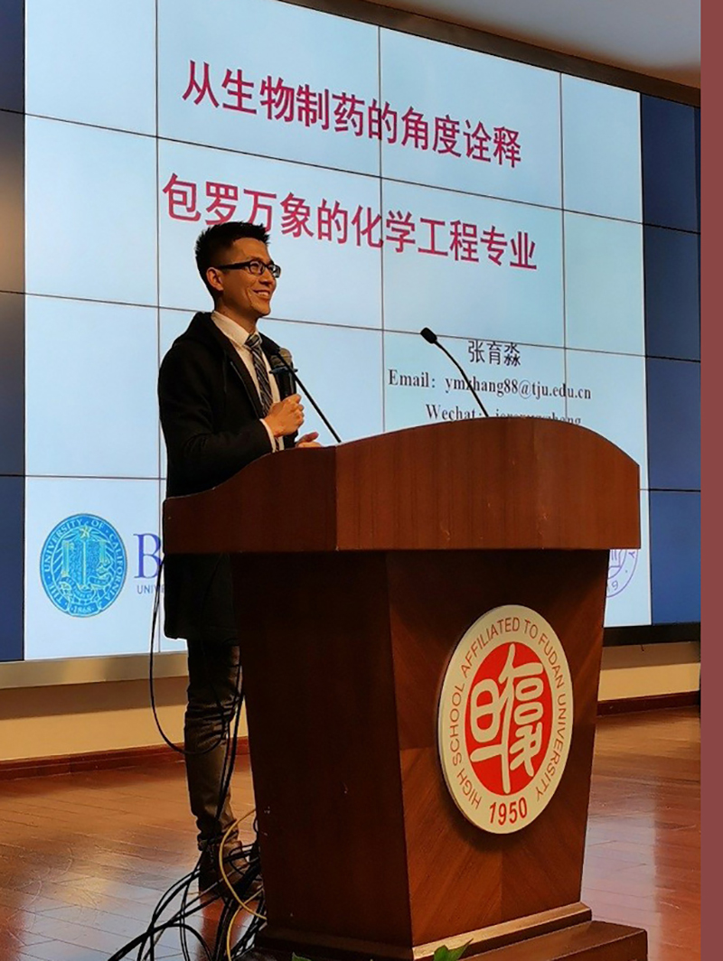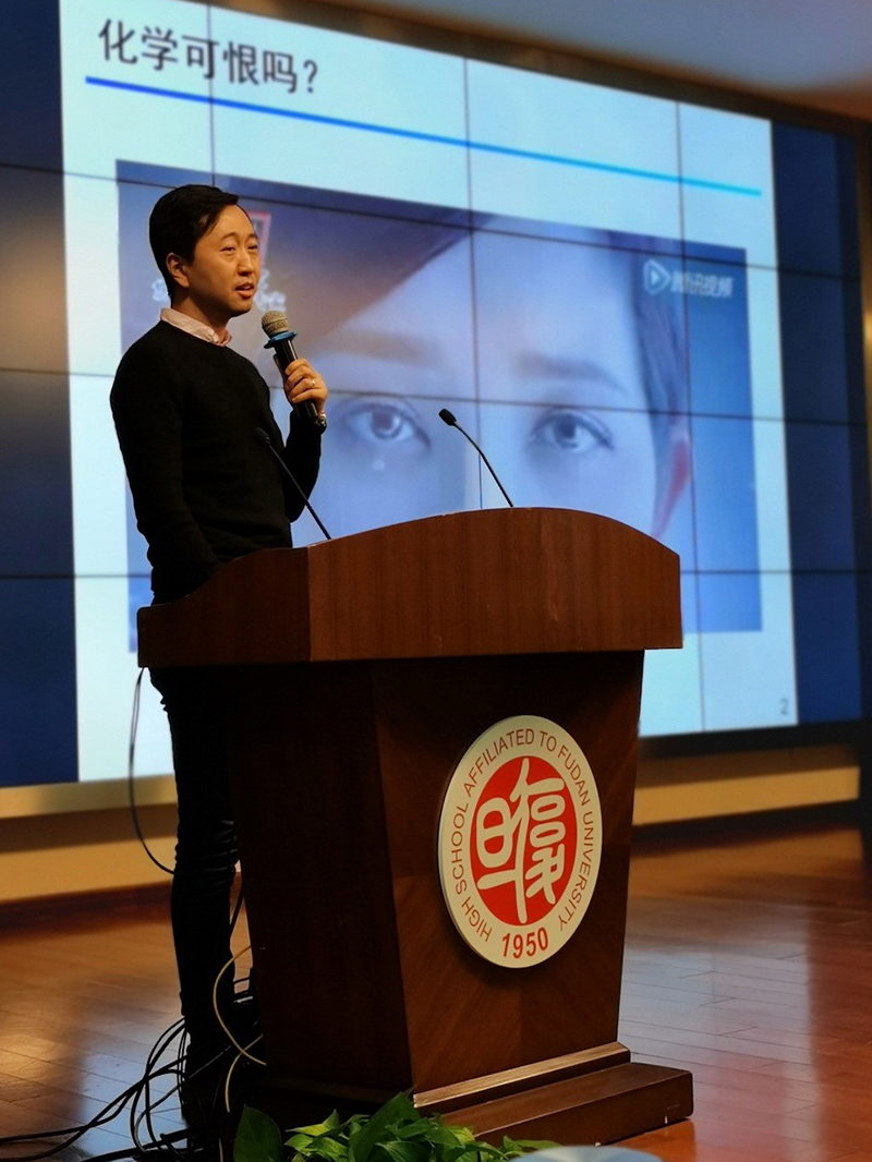 本站讯(通讯员 李莎)12月19日下午,化工学院“名师进中学”活动走进上海复旦大学附属中学,我院优秀青年教师代表翁哲教授和张育淼教授,为100余名学校师生带去了精彩的专题讲座。复旦大学附属中学党委书记郭娟、科研室主任丁鸣、科研室副主任曾德琨、升学指导办公室主任丁恒及全体化学教师参加了此次报告会。