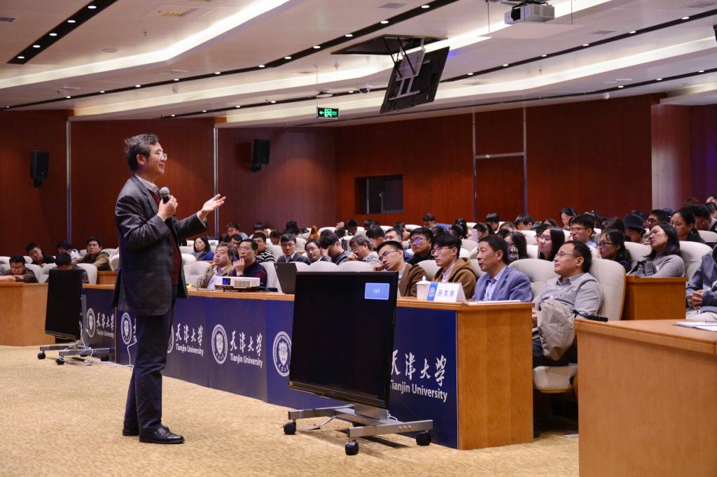 本站讯(通讯员 张人元 摄影 张子儒 刘丽丽)大数据带来的信息风暴正在变革我们的生活、工作和思维方式,而优化研究是解密数据问题的强大工具之一。2018年11月1日上午,天津大学北洋园校区行政楼一层报告厅掌声不断。一场主题为“大数据与优化”的“数学揭秘”正在上演。本次北洋数学讲堂由中国科学院院士袁亚湘讲授,由数学学院院长孙笑涛主持。