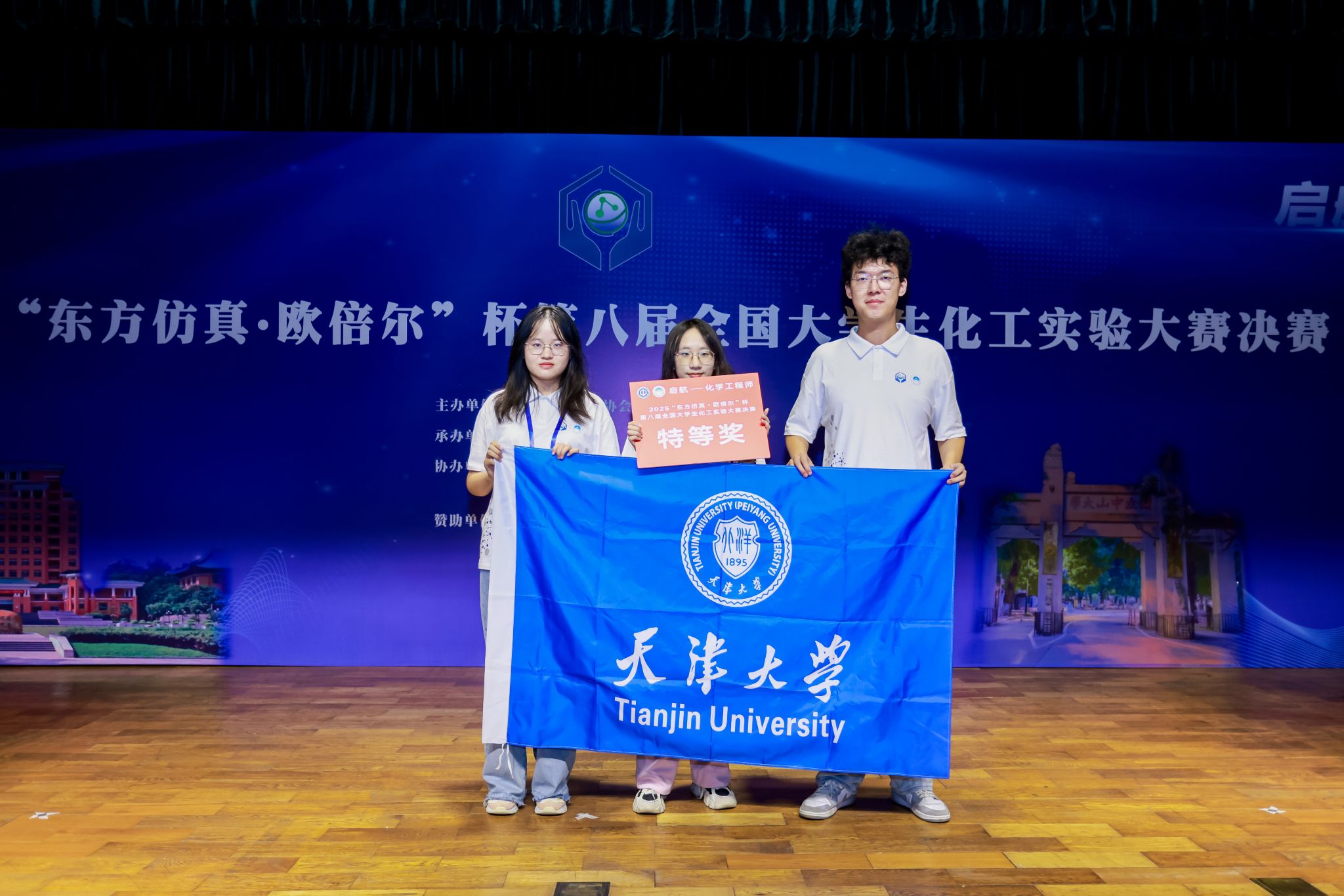 据悉,天津大学代表队的三位同学于今年6月通过校内选拔完成组队,整个暑假里,三位同学克服各种困难,全身心投入到大赛的准备中。化工学院白玉璞、姜峰、肖晓明三位教师积极给予参赛的指导,制定详细的备赛计划。师生通过共同努力,成功取得了本年度该项赛事的最高荣誉。