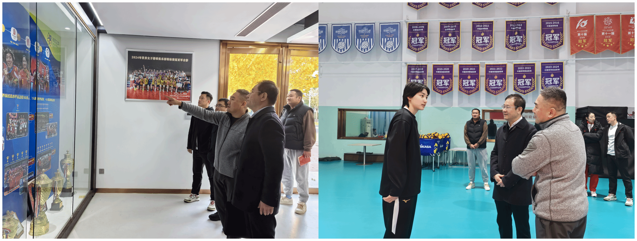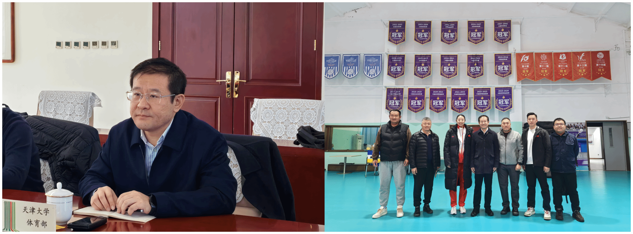 座谈会后,与会人员一同来到市体育局训练基地参观,并在排球中心看望了正在备战全运会的天津大学教师姚迪。大家实地了解运动员日常训练情况,就课程建设、训练保障、日常管理等方面深入交流,为后续合作的精准落地奠定了更坚实的基础。