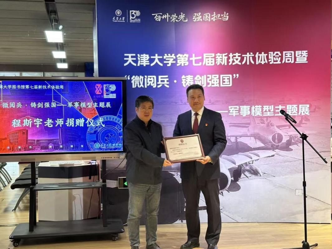 开幕式在师生们的掌声中拉开帷幕,程斯宇在致辞中分享了他捐赠军事模型的初衷与感悟。他表示,每一件模型背后都承载着一段历史、一种精神,希望通过这次捐赠与展览,激发更多师生关注国防、热爱祖国,将个人理想融入国家发展大局。