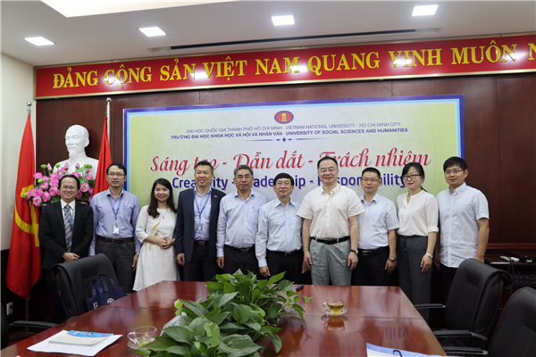 Ngo Thi Phuong Lan首先对代表团的来访表示欢迎,随后简要介绍了胡志明市国家大学的发展历史、师生规模、架构职能以及社会角色。他表示,胡志明市国家大学是越南两大国家大学之一,在越南国内排名第一位,下属7个管辖大学及研究所,共有学生78000余名,与世界30多个国家的200余所院校保持紧密的联系。他表示,胡志明市国家大学拥有高度的自主权以及对社会的高度责任感,在越南高等教育系统具有核心地位,一直致力于为国家经济社会发展做出贡献。谭欣首先对胡志明市国家大学的热情接待表示感谢,他简要介绍了我校的学科优势、科研实力、国际化发展及中国-东盟工科大学联盟建设等情况。他表示,中越两国和两国人民之间的传统友谊源远流长,两校在学科配置、科学研究以及对社会的责任感具有匹配性,希望两校进一步在高层互访、师生交流、科学研究等领域增强交流与合作。会谈中,与会人员就学生交换项目、留学生奖学金项目、教师科研合作及校企合作项目等具体话题进行了深入交流。