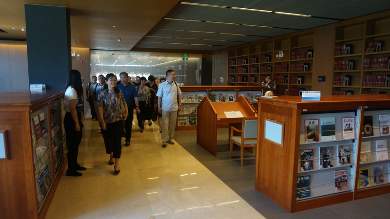 座谈结束后,校工会兼职副主席于晓燕引导与会人员参观了郑东图书馆,大家纷纷在校园中轴线观景台、日新书斋、VR体验区、朗诵亭等区域驻足,兴味盎然。