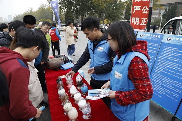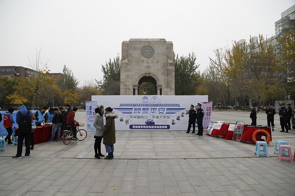 本站讯(通讯员 王冬 李泽鹏 摄影 丁宇)为构建平安和谐校园,提高师生安全意识,营造警民共筑平安的良好氛围,11月15日中午,学校保卫处联合天津市公安局在卫津路校区北洋广场开展“网聚平安•平安高校行”系列宣传活动。此次活动中,民警通过演示讲解、现场互动、样品展示和模拟对抗等表现形式,分别从反恐防暴、识骗防骗、知毒拒毒等方面为师生讲述了生动的一课。