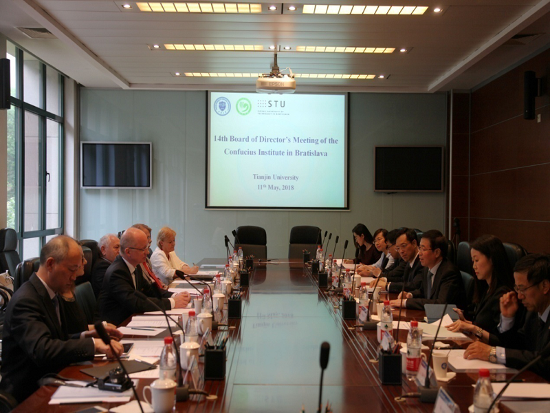 本站讯(通讯员 韩旭)5月11日,布拉迪斯拉发孔子学院第14届理事会在天津大学会议楼第一会议室召开。斯洛伐克技术大学校长Robert Redhammer 、农业大学校长Peter Bielik、医科大学教授Vladimir Balogh、天津大学党委书记李家俊出席了会议,国际合作与交流处、建筑设计规划研究总院、国际教育学院及天津中医药大学国际教育学院相关负责人、孔子学院中外方院长等参会。