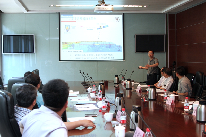 本站讯(记者 摄影 宋雪峰)5月26日,青岛市委常委、副市长王晓方率该市科技代表团赴天津大学考察海洋科技研究成果。天津大学校长李家俊在会议楼第一会议室与代表团会见。天津大学科研院、机械学院、建工学院、精仪学院、化工学院等单位有关负责人和专家分别就天津大学与青岛市开展科技合作、海燕水下滑翔机、海洋检测探测、海洋能源资源利用、海洋工程装备和海洋生物工程等科研领域相关进展情况作了介绍。双方就进一步加强在海洋领域的科技合作交换了意见。