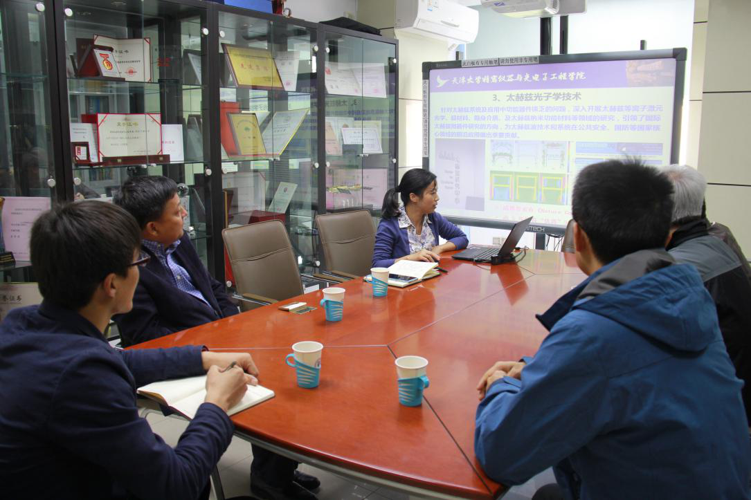 随后,来宾在学院光电信息技术教育部重点实验室,先后参观了超快激光研究室、激光与光电子研究所、光电技术与光纤传感实验室和太赫兹中心,并与实验室人员做细致交流。