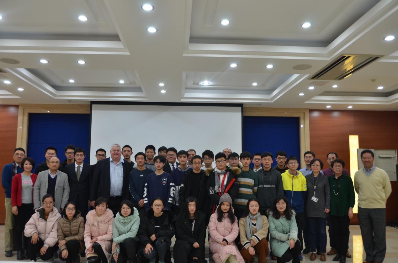 本站讯 (通讯员 胡胜楠)12月12日,恩智浦半导体资深副总裁兼微控制事业部总经理Geoff Lees、恩智浦半导体微控制器事业部研发副总裁Brian Branson及其他8位恩智浦公司的高管一起做客天津大学。Geoff Lees先生为天大学子带来了一场主题为“Learning in the era of ‘4th Tectonic Shift’”的讲座,并与求是学部新工科实验班(恩智浦班)的学生座谈。求是学部党委书记单小麟、副主任于倩出席讲座和座谈会。