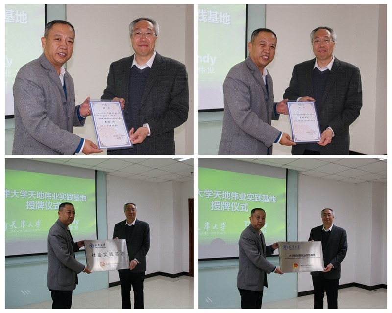 在座谈会上,戴林感恩母校对于企业发展的支持与帮助,称天地伟业是“天大”的企业,并愿意与母校开展更加深入的合作,为天津大学的发展贡献力量。张力新对天地伟业取得的成绩给予了肯定,向戴林传达了天津大学两篇Science文章同期发表的好消息,并对学校未来的发展思路做了介绍,同时对太雷班、宣怀班的学员提出了期许,鼓励大家抓住实践机会,感受天地伟业的企业文化,学习企业刻苦钻研的精神,激励同学们成长为各行各业的精英。随后,太雷班、宣怀班学生代表分别发言,分享自身经历,并对戴林老师给与的指导与帮助表示感谢。张力新为戴林颁发太雷班、宣怀班导师聘书,并为天地伟业:天津大学社会实践基地、天津大学创新创业实践基地授牌。