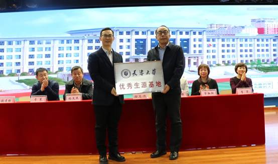 授牌仪式上,林卫峰宣读了《天津大学授予吉林省延边第二中学“天津大学优秀生源基地”称号的决定》,并对延边二中向天津大学输送优质生源的情况表示感谢,希望以此次交流为契机,进一步加强两校交流合作。随后,徐忠炜介绍了延边二中近年来的发展情况,并鼓励青年学子以天津大学为目标,努力奋进。他说道:“每年四月,是天津大学赫赫有名的海棠季。四月春光扎好,天大海棠满园。希望各位同学,不忘初心,砥砺前行,考入天大名校,到天大海棠园中去展现自己青春靓丽的风采!”。