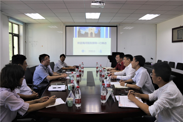 明东对张文龙、沈军一行的来访表示热烈欢迎。他指出,天津大学是学科优势明显、综合实力雄厚的老牌工科院校,天大的医科发展也得到了教育部与市卫健委的高度重视与大力支持。医学不是一个单兵作战的学科领域,还将为学校传统优势学科注入衍生动力的催化剂。天大历来秉承认真务实的做事风格,前期已与海河医院在研究生导师聘任、基金申报等方面取得了良好的合作进展。将持续推动双方开展深入交流,在临床医学生培养、医学研究等方面进一步合作,实现互惠共赢。