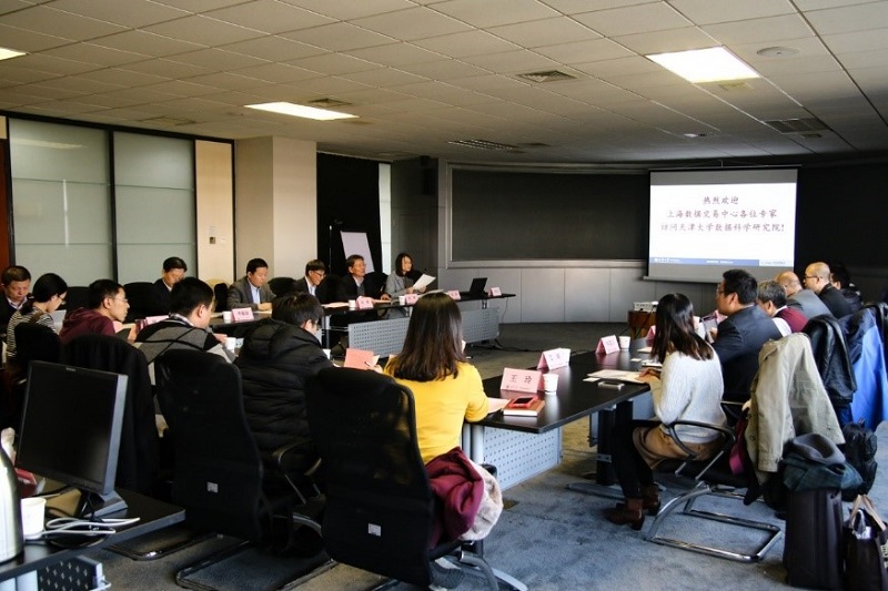 为了进一步深入探讨天津大学与上海数据交易中心在大数据领域的合作空间,天津大学数据科学研究院的学者们为到访客人进行了系列学术成果介绍。张加万作了题为大数据可视化与可视分析的学术分享,并介绍了科研团队建设情况;天津大学计算机科学学院王文俊教授介绍了大数据与智慧安全方面的研究成果,并着重强调这一方向对实践的指导意义;管理与经济学部的张永杰教授和张兮教授分别以互联网情绪数据与财富管理产业创新的联系、基于社交网络位置数据的商业选址模式两个方向为主题介绍了研究成果及发展方向;自动化学院王守相教授阐述了大数据在智能配用电节电、调度等方面的重要应用。
