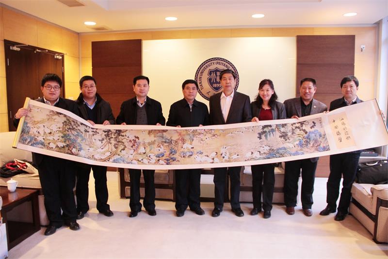 本站讯(通讯员 孙亮)12月9日下午,河南省鹤壁市市委书记范修芳一行5人访问天津大学,洽谈市校合作相关事宜。校党委书记、校友总会会长刘建平在卫津路校区会议楼贵宾室亲切会见来宾,副校长、科研院院长、校友总会副会长元英进与来宾在第一会议室举行了工作会谈。鹤壁市委常委、市委秘书长李成宽,科技局局长秦志军,规划局副局长李松涛,国立光电董事长朱明甫陪同来访;设计总院院长洪再生、党委书记余敬海,校友总会常务副秘书长、校友与基金事务处处长李秀民,海洋学院党总支书记、常务副院长牛志广,科研院副院长杨明海,设计总院副院长张锡治、袁大昌,经管学部党委副书记施亮星等陪同会见及会谈。