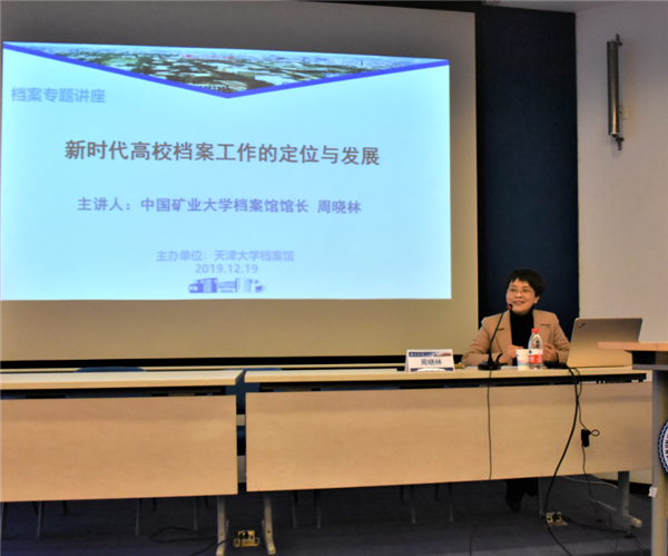 本站讯(通讯员 田梦)12月20日下午,中国矿业大学档案馆馆长周晓林在天津大学作了“关于新时代档案工作定位与发展”的专题讲座,本次讲座由天津大学档案馆馆长韩宝志主持。档案馆全体工作人员、全校各单位档案工作人员听取了讲座。