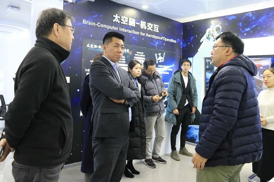 会后,李彬一行参观了医工院实验室展厅以及国家重点研发计划项目“生-机智能交互与生机电一体化机器人技术”样机展厅,并现场体验了相关技术与试验平台。