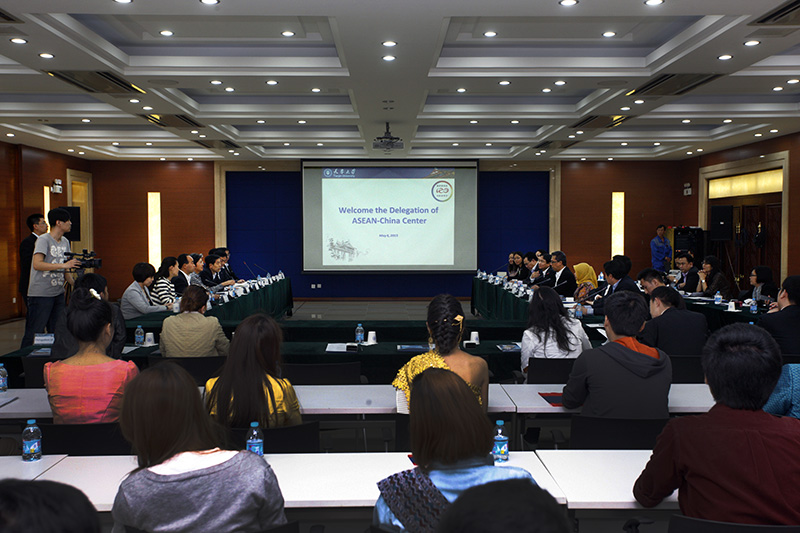 本站讯 (通讯员 刘娜 摄影 王建泽 王涛)5月6日,中国驻东盟大使杨秀萍率东盟主要成员国驻东盟使节及中国—东盟中心代表一行24人访问我校。访问团成员主要包括越南驻东盟常驻代表武登勇、缅甸驻东盟常驻代表敏伦及夫人、新加坡驻东盟常驻代表陈洪盛、印尼驻东盟常驻代表拉赫玛特及夫人、中国—东盟中心代理秘书长兼综合协调部主任黄英、东盟秘书处外联二部主任范明英、菲律宾驻华公使兼领事罗仁、老挝驻华使馆副馆长苏利塞·苏利敦、马来西亚驻华使馆一等秘书霍斯内等。天津市人民政府外事办公室亚洲处副处长赵晶陪同访问。我校党委书记刘建平、副书记李义丹及校长助理胡文平在科学图书馆一层报告厅与代表团会谈。我校陪同人员有国际合作与交流处处长杨福玲、国际教育学院院长陈志华、书记李锵以及学工部副部长马德刚。