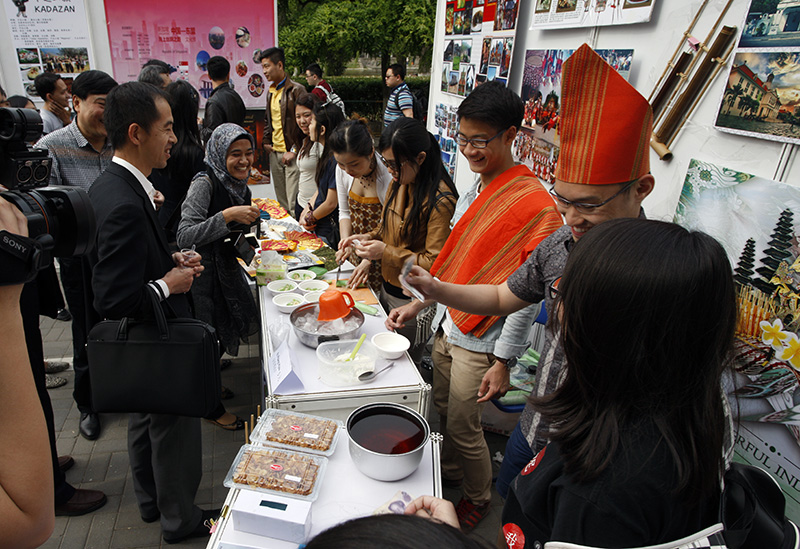 代表们还饶有兴致地参观了由国际教育学院举办的东盟文化交流展,与东盟留学生亲切交谈,了解他们在我校学习和生活的情况,并品尝了学生亲手制作的各国特色美食。