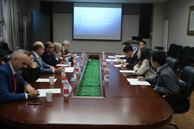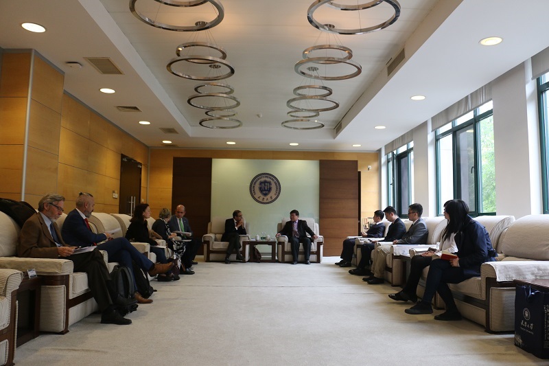 会谈中,张涛副院长对Miguel Angel Castro校长一行表示了热烈欢迎,简要介绍了自动化学院的历史沿革、学科建设以及科研发展情况,建议以电力电子学科的前期合作为基础,扩大两校优势学科间的合作,同时借助西班牙与中国政府间的合作交流及国际访学研究基金等多方位的支持,通过两校间的框架性协议,从扩大学术合作交流与建立研究生互访交流机制两个方面开启校院两级的互访活动,建立一个常态化的两校研究生互访机制。此外还提出定期举办学术研讨会等相关的科研及教学活动建议。Miguel Angel Castro校长首先对自动化学院的学科建设和科研成果表示赞赏,同时对张涛副院长等人的提议表示肯定,希望通过两校间的合作,促进学院相关方向的学科交流和科研合作。
