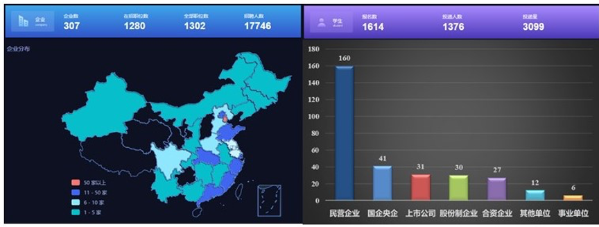 本场双选会共有来自全国24个省(自治区、直辖市)的307家用人单位参加,招聘职位达1280个,涵盖航空航天、新能源、新材料、石油化工、电气机械、生物医药等40余个行业,包括中国船舶重工集团公司第七一二研究所、中国电子科技集团公司第九研究所、中国科学院长春应用化学研究所、西北有色金属研究院、国家知识产权局专利局专利审查协作北京中心、天津水泥工业设计研究院有限公司等多家知名企业;参会单位中央企、国企和事业单位占比15.31%,民营企业占比52.12%,上市公司、股份制企业占比19.87%,合资企业和其他性质单位占比12.7%。