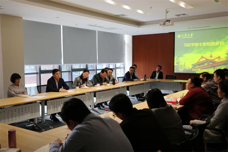 本站讯 (通讯员 盛筠)10月13日,研究生院党支部在北洋园校区杏荪楼A201会议室召开《习近平的七年知青岁月》专题读书分享会。天津大学校长钟登华参加会议并分享读书体会。研究生院、王学仲艺术研究所、工笔重彩研究所全体党员参加学习研讨。