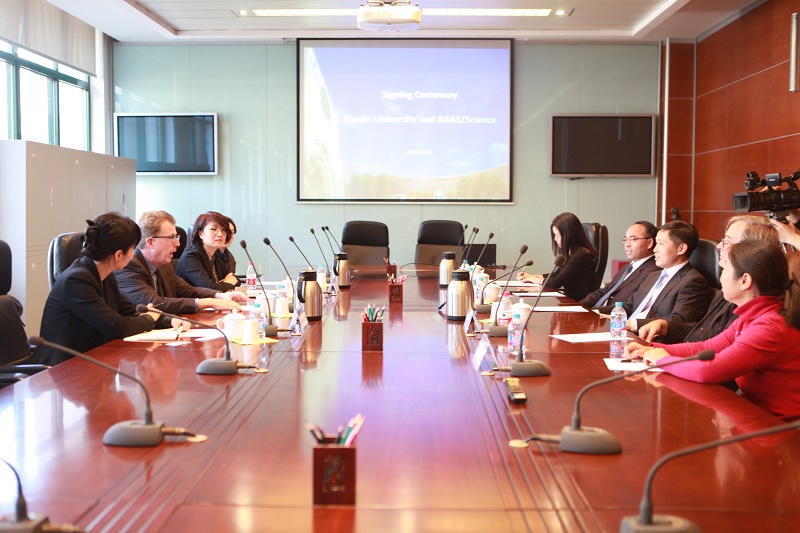 本站讯(通讯员 原博)3月2日,美国《科学》杂志出版人比尔·摩兰(Bill Moran)先生率团访问天津大学。校党委书记李家俊会见代表团,校长钟登华代表天津大学与《科学》杂志签署合作备忘录。副校长胡文平、药学院、期刊中心、国际处相关负责同志参加了会谈及签约活动。
