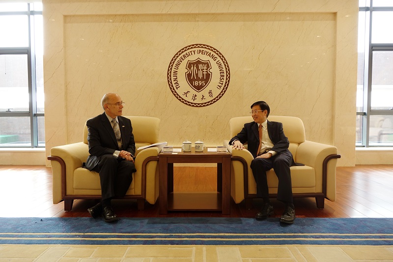 钟登华主持了工作会谈,他首先对拉斐尔一行的来访表示欢迎,并对两校多年合作取得的成果给予了肯定。钟登华期望,双方的战略性合作能够推动两校学科水平的进一步提升。随后,天津大学国际处负责人简要介绍了学校沿革,并回顾了两校合作伙伴关系发展的历程。拉斐尔表示,此次天大之行让他颇为震撼,特别是参观了天津大学校史馆之后,他发现,两所以工科见长的一流院校,在办学理念、历史脉络、师生规模、学科设置以及科研方向等方面有着惊人的相似之处,此次深圳的特色学院合作也将为两校依托深圳特色学院开展教学科研合作提供绝佳的平台。他期待着天津大学佐治亚理工深圳学院建设成具有示范性的一流学院。双方高度评价了深圳特色学院工作的进展,一致认为,这次合作将为人才培养和科学研究领域开创全新的合作模式,对学院未来的发展充满期待。会谈中,两校就深圳学院的未来发展规划、运行模式及组织构架、以及下一步的工作进一步达成了共识。