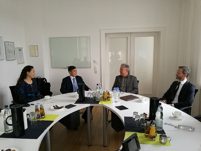 在德期间,钟登华率领天津大学代表团访问了德国萨尔大学。萨尔大学校长Phil.Volker Linneweber、副校长Astrid Fellner、校长助理Sonja Karb-Ressing、海外项目部负责人Wolfgan Heintz接待了代表团。双方就已经开展的学生交流、科研项目合作等内容进行了交流,就以后开展的合作项目以及项目实施的可能性进行了研讨。钟登华一行还参观了位于萨尔大学校园内的德国INM新材料研究院,深入了解研究院的管理方式以及与大学合作的模式。论坛期间,钟登华会见了部分在德校友。