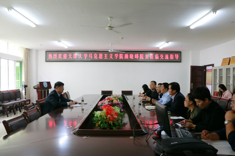 颜晓峰高度评价了海南大学马克思主义学院近些年的建设发展工作,并对他们取得的成就表示衷心的祝贺。他从科学研究、学科建设、人才培养以及学院未来五年工作计划等方面详细介绍了天津大学马克思主义学院的情况。他表示,多年来天津大学与海南大学已经建立了友好合作关系,天津大学马克思主义学院将会重视并扎实推进与海南大学马克思主义学院合作共建的相关工作。