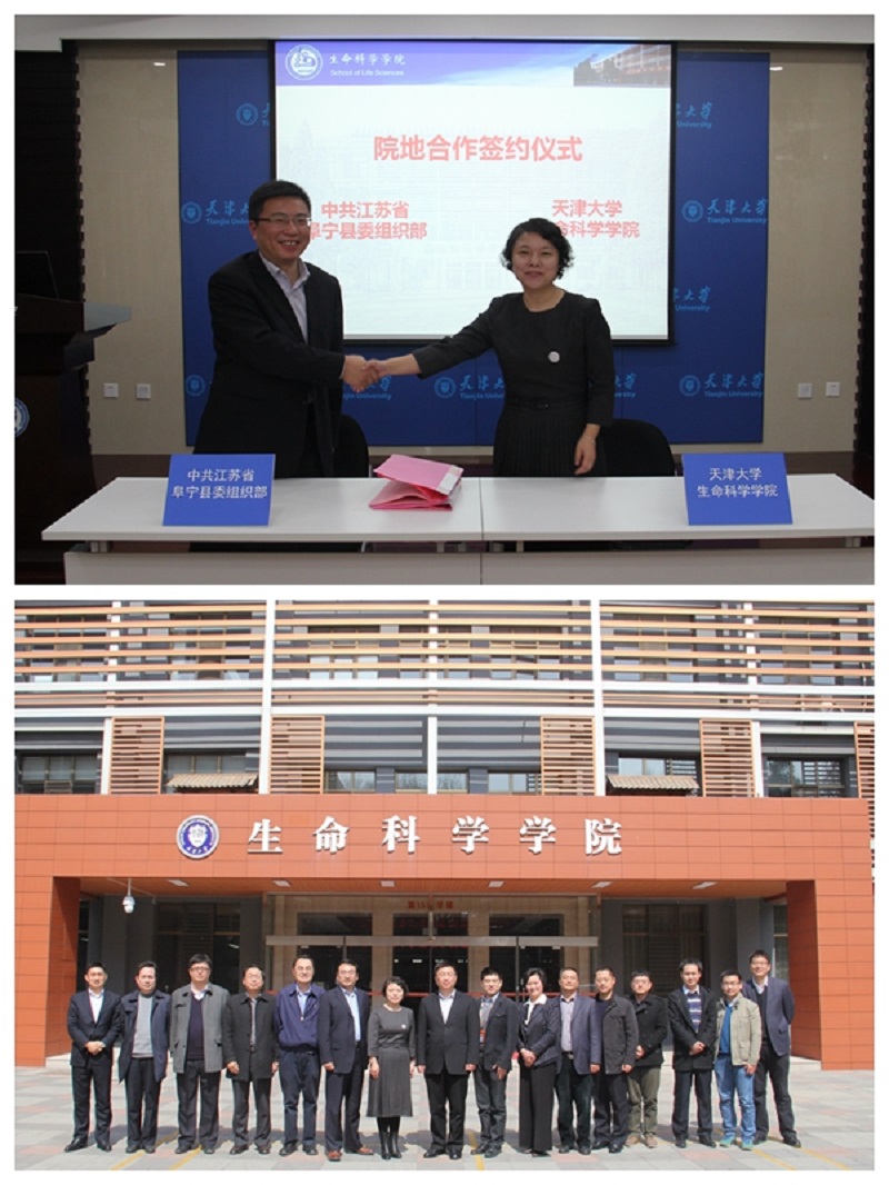 随后,双方与会人员进行了交流。双方表示,此次沟通是一个良好的开端,对今后在校企合作、科技服务和人才对接的工作打下了良好的基础。最后,天津大学生命科学学院党总支与中共江苏省阜宁县组织部签订了院地合作协议。双方将在科技研发、技术攻关、科技成果转化、人才引进等方面开展全方位、多层次的合作。参加江苏省第八批科技镇长团挂职锻炼的生命科学学院彭鑫老师表示,在阜宁县挂职期间,收获颇丰,虽然面临工作环境新、工作要求新、工作方式新的情况,但努力向科技镇长团的老成员、地方基层同志学习,积极投入到阜宁县的人才和科技工作中去。今后将会进一步提升工作能力和理论水平,提高科技推广、人才服务的意识,促进高校和地方实现双赢。