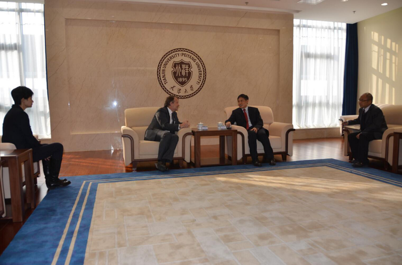 本站讯 (通讯员郭婧)2016年11月2日,天津大学校长钟登华在北洋园校区会见了法国尼斯综合理工学院校长Philippe Gourbesville,双方就天津大学国际工程师学院目前发展及未来规划等问题进行会谈。求是学部党委书记单小麟,法国综合理工联盟Erasmus国际项目部总监尹娜陪同会见。