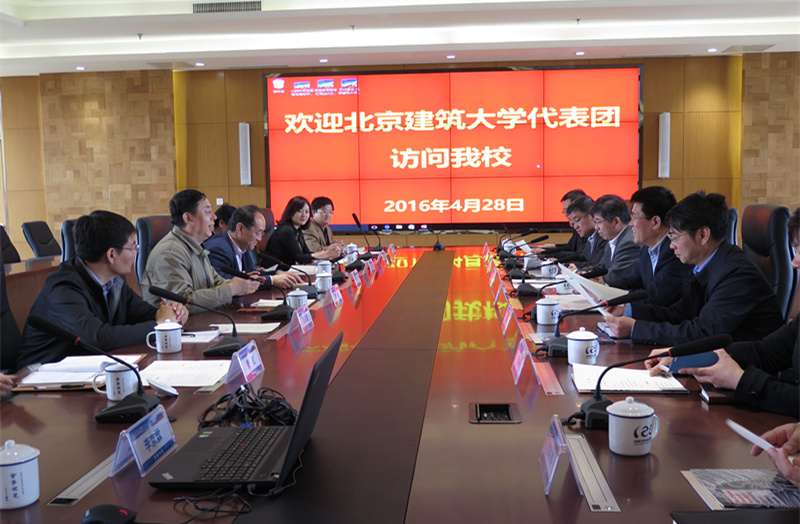 李义丹对北京建筑大学代表团的来访表示欢迎,并向代表团介绍了学校发展历史、北洋园校区整体情况、人的科学发展观与高校学生工作宏观思考。