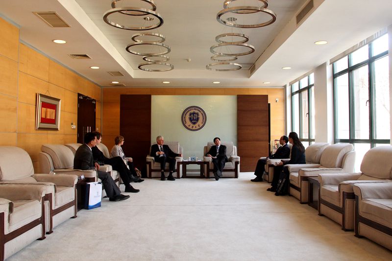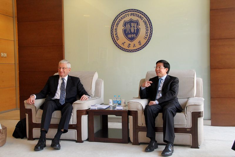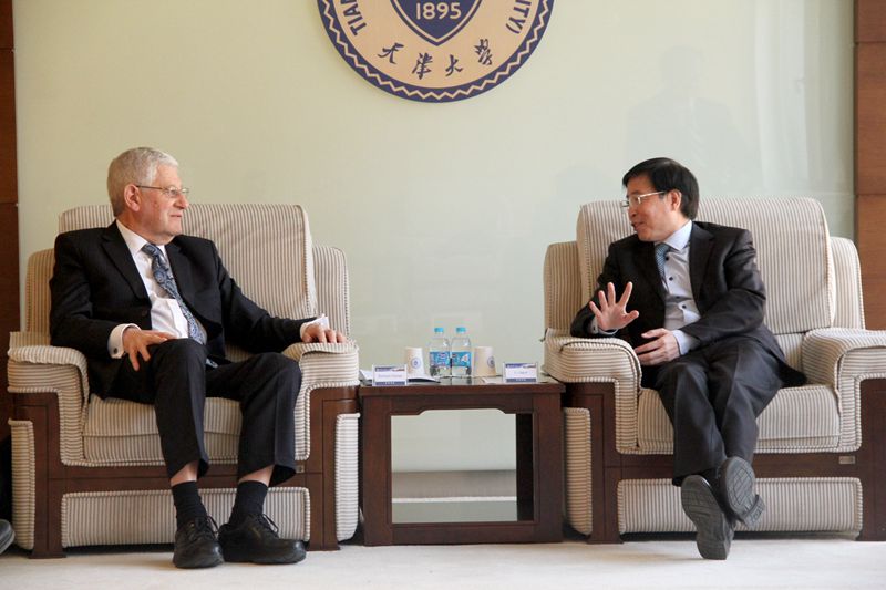会见中,李家俊首先表示非常高兴迎来了“自己的校长”。他热情地询问自己在学校时熟识的教授们的情况,特别询问了学校在材料领域的最新发展。随后,他简要介绍了我校的历史沿革,近年学科、科研发展情况,办学特色以及新校区的建设及运行情况。他强调,学校在工科方面特别是化工、建工、材料等领域实力雄厚,与工业界有着深度的合作,而这些领域也是斯旺西大学的优势学科,希望今后两校在以上学科及其他领域的合作取得突破。Richard Davies表示一直期待着来探望知名校友。作为斯旺西大学的校长,对于天津大学的实力特别是在工程领域的优势早有耳闻,他非常骄傲自己的校友在这所中国著名高校担任一校之长。他简要介绍了斯旺西大学近况,包括传统优势学科在近年的发展、新近设立的医学院运行情况以及学校新校区规划建设进展等。他表示希望借此机缘推动两校在多领域的合作,也盛情邀请李家俊在方便的时候回母校访问。会上,双方还围绕学校人才引进、校企合作、新校区建设与管理等话题进行了饶有兴致的讨论。随后,在胡文平的陪同下代表团在新老校区分别访问了药学院与材料学院实验室,参观了校史馆、冯骥才艺术研究院、郑东图书馆,并就后续合作与相关教授和工作人员进行了对接。