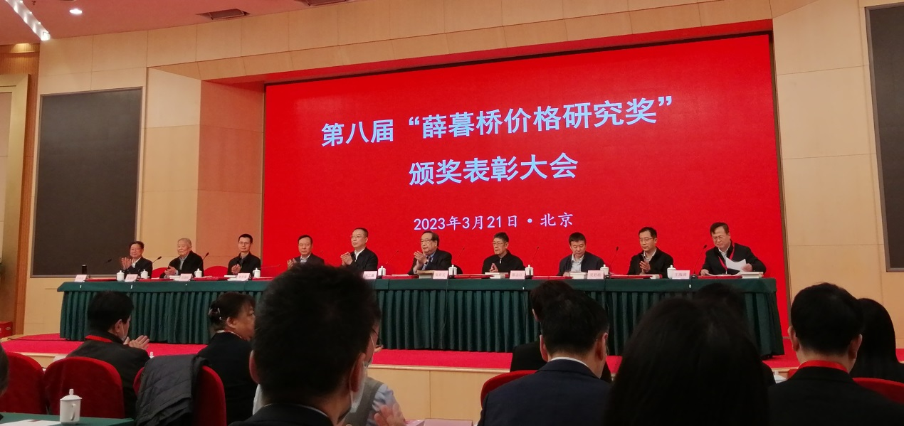 本站讯(通讯员 马寅初经济学院)(马寅初经济学院供稿)第八届“薛暮桥价格研究奖”颁奖表彰大会于2023年3月21日在北京隆重举行。来自国家发展和改革委员会、国家市场监管总局、国家医疗保障局等部门及全国价格研究和实际工作单位的200多位领导和专家出席了颁奖大会。