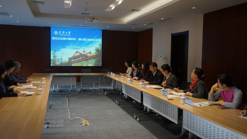 本站讯(通讯员 苏红)12月7日,天津市总工会副主席程树梅、市总女工部部长于军、女工部副部长王子铭等一行到天津大学北洋园校区调研工会工作,为天津大学北洋园校区“爱心妈咪之家”授牌。天津大学党委副书记、纪委书记兼工会主席孙广平出席调研座谈会并参加授牌仪式。调研座谈会由校工会常务副主席马桂秋主持。